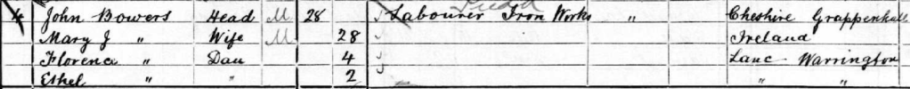 | 20 May 1894 | Marriage to John Bowers at St Paul, Warrington, Lancashire | Marriage Certificate |