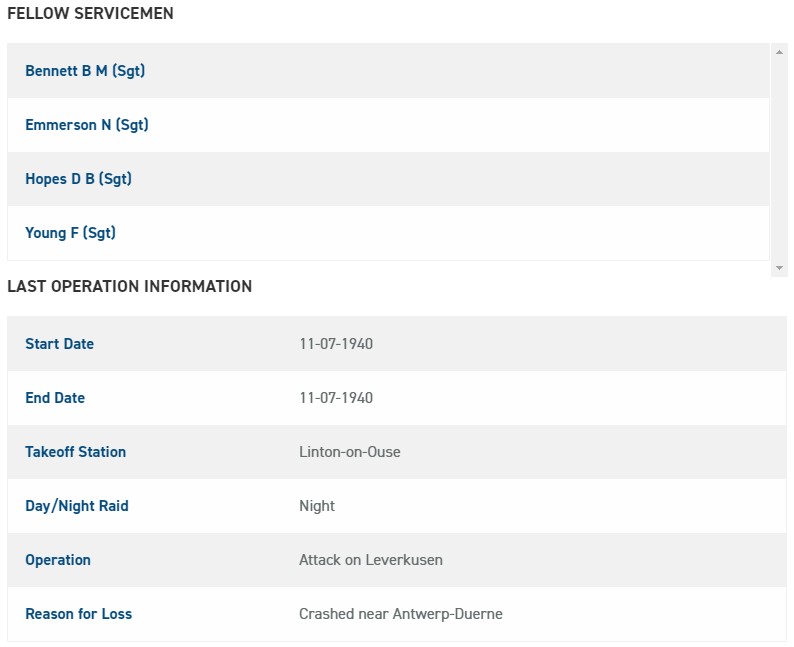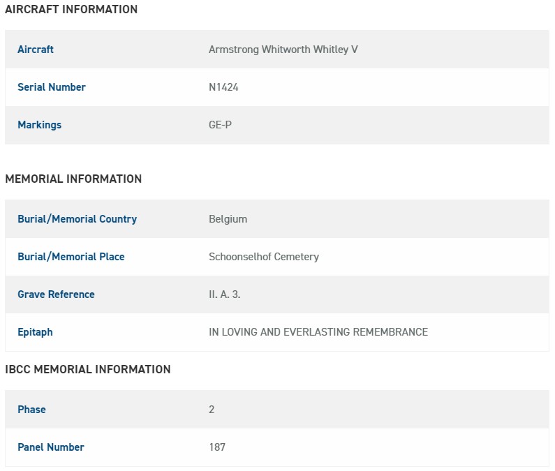 Again, there’s some wonderful additional detail here, including the type of aircraft (a Whitley bomber), his role onboard, the names of his crew mates and the target of their attack. But I want to go much deeper. I want to understand his whole war.